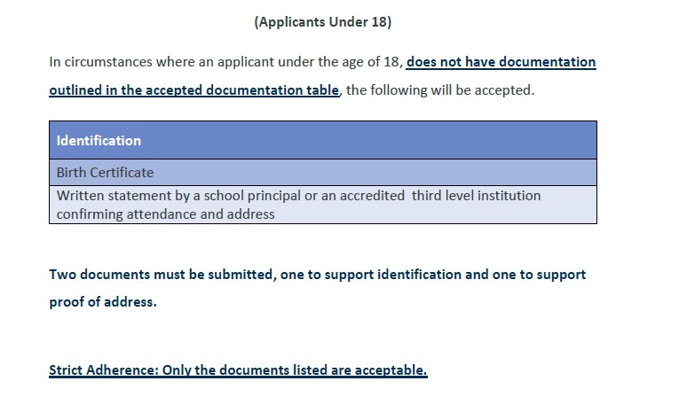Sports leaders under 18 may also be required to complete the vetting process. To apply for vetting, there must be a completed parental consent. Link to form here (also available in the list of downloads at the end of the page). Vetting cannot be conducted for a person under the age of 16. In circumstances where Children under 18 do not have the documentation listed in Step 2 above, the following listed here will be accepted.